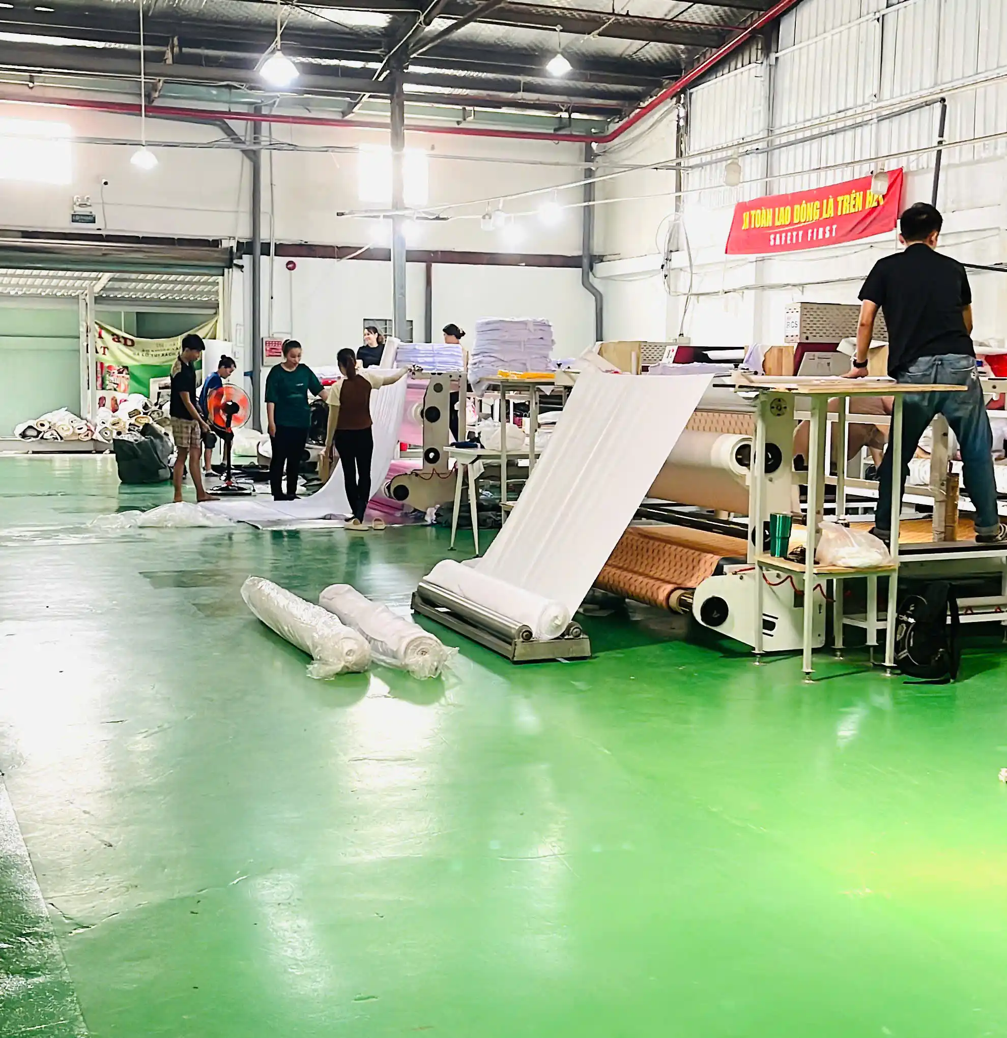 Nhà máy rộng 1500m2 cho phép chúng tôi xử lý hàng chục nghìn mét vải mỗi ngày. Chúng tôi không bao giờ trễ hẹn với các đơn hàng lớn. Hệ thống máy móc đời mới giúp giảm thiểu hao hụt vải, tiết kiệm chi phí tối đa cho bạn.
