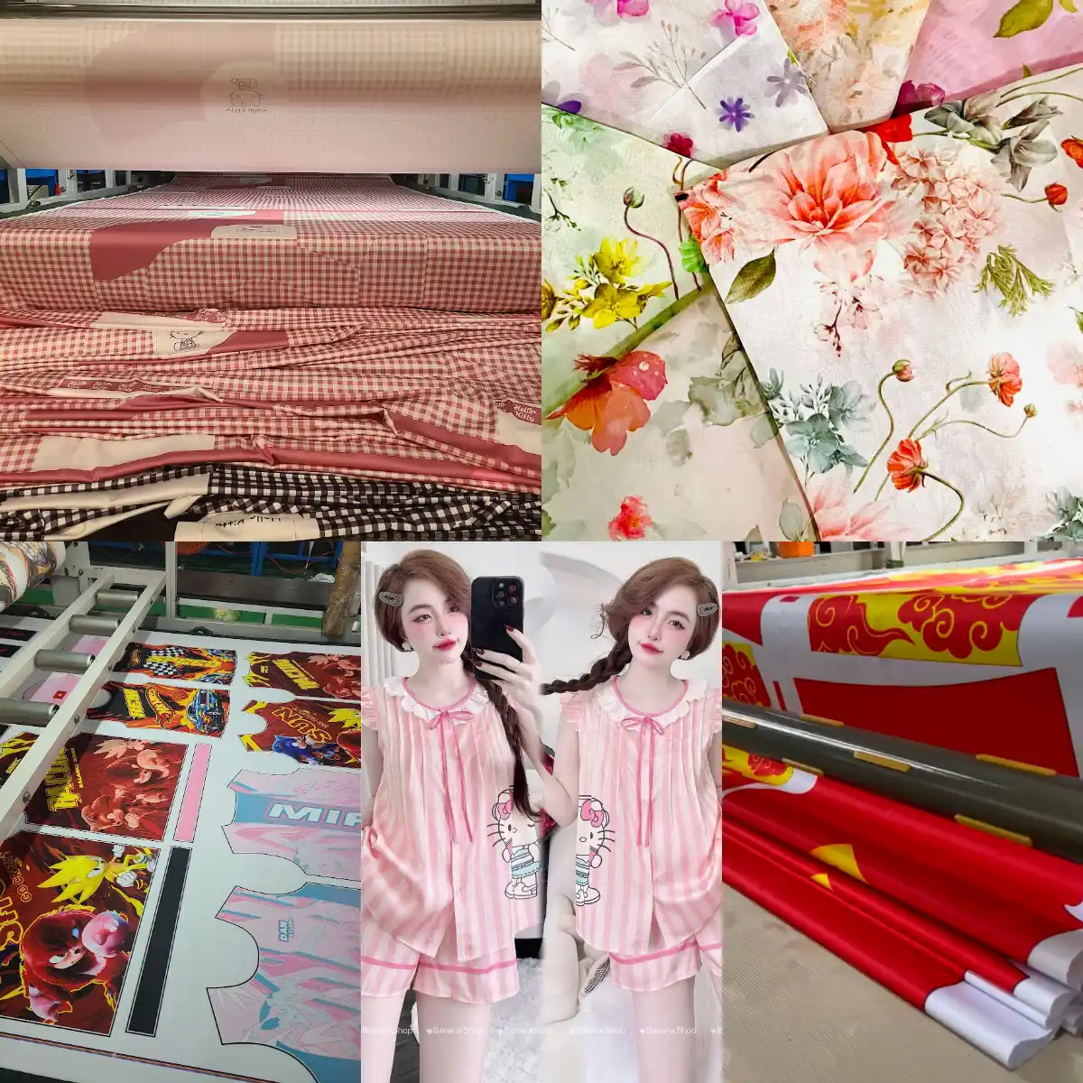 Đồ bộ Pajamas: Tạo ra những mẫu vải họa tiết dễ thương trên nền lụa, satin cao cấp.