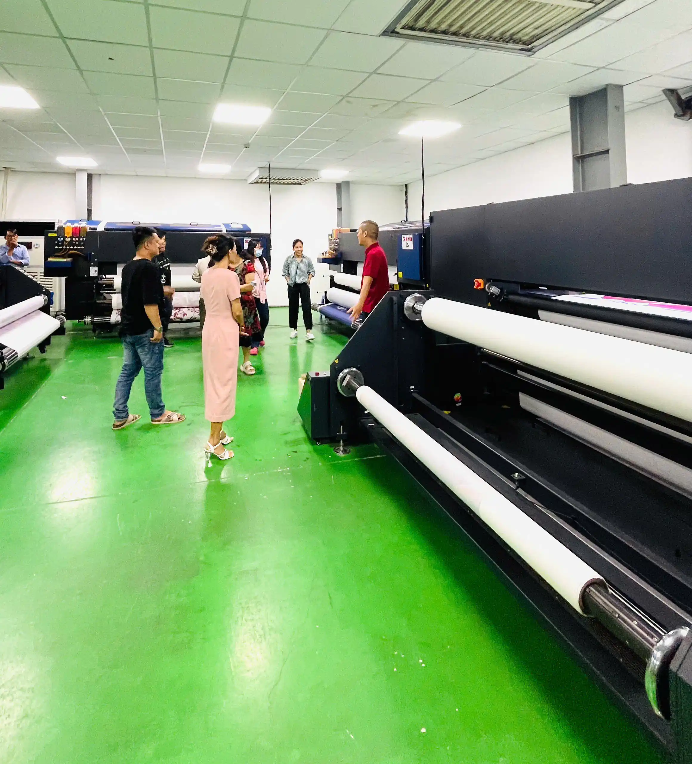 Hình ảnh khi in chuyển nhiệt sẽ đạt độ chuyển màu (gradient) cực kỳ mịn màng. Các tông màu khó như màu da người hay màu dạ quang đều được tái hiện trung thực. Khổ máy in rộng lên đến 175cm, sẵn sàng phục vụ nhu cầu in vải cây khổ lớn.